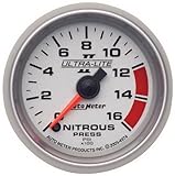 Auto Meter 4974 Ultra-Lite II Full Sweep Electric Nitrous Pressure GaugeAuto Meter Ultra-Lite II Full Sweep Electric Nitrous Pressure Gauge monitors and displays the nitrous pressure in the vehicle’s nitrous oxide system. This fuel pressure gauge features reverse lighting effect with a white dial during the day and a dark dial illuminated increments and pointer at night. It allows easy readability and installation.