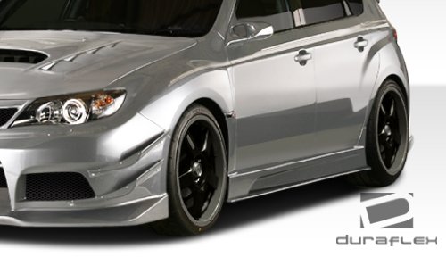 Duraflex FRP Subaru Impreza STI Impreza WRX VR-S Side Skirts 4pc > 2008-2013 . Extreme Dimensions has revolutionized fiberglass marketing with their premium Duraflex aerodynamics. Duraflex is not flexible like urethane or plastic bumpers. Duraflex fiberglass combines fiberglass, plastic, and flex resins to obtain its unique features. Because of these features, Duraflex technology obtains a durability rate than the average fiberglass product, resulting in reduced shipping damages. Duraflex products come complete with a black primer finish, high quality mesh grille if applicable, generic hardware kit, and a basic guide to help you install the product. This revolutionary product allows the consumer to receive a premium fiberglass product at an affordable price. All fiberglass parts require modification, shaving, sanding, drilling, filling in order to ensure proper fitment.FeaturesHigh quality 6 oz. fiberglassProfessional prep work requiredCutting, Shaving, Filling required on FRP partsBlack primer finishHigh quality mesh grilleInstallation GuideGeneric Hardware Kit (most parts)Reduced damage rate up to 75%DISCLAIMER: Due to differences in products and design, durability test results may vary.