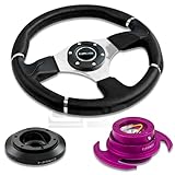NRG-SRK-180H+008R+650PP, NRG Innovations 13.78" 350mm Black Leather Racing Steering Wheel Combo with 6 Hole Short Hub Adapter with Gen 3.0 with Handle Purple Quick Release Kit SRK-180H