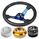 NRGSRK130HRG+200CF+101LS+016RBL, NRG Innovations 13.78" 350mm 3" Deep Dish Style Black Leather Blue Center Marking Blue Spokes Racing Steering Wheel Combo with 6 Hole Short Hub Adapter with Gen 2.0 Carbon Quick Release with Silver Lock Hub Kit SRK-130H