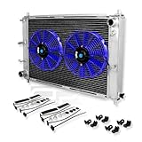 DPT, RA-FM97MT-3+RAF-12-BL+FMK-X2, Full Aluminum Performance Three Tri Row Core Chrome Radiator with Blue Electric Slim Fans with Mounting Kit Overall Size 31"x20"x4.75" for Manual Transmission OnlyThis Aluminum Radiator is designed to provide maximum cooling efficiency to prevent premature engine failure. Its light-weight, and high-heat transferring aluminum features a tube and fin design that, dramatically increases surface area that enables the heat to dissipate more efficiently. This Aluminum Radiator is at least 40% more efficient than stock ones. Most importantly, it has a much higher capacity for coolant than stock ones, which means that your cooling system will be more efficient and will be more resistant to temperature surges in racing applications.